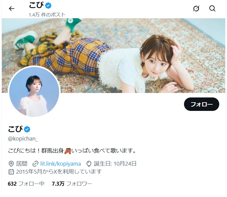 こぴさんの出身地は、X(旧Twitter)で公表されています。