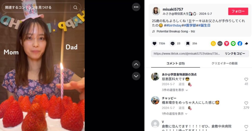 「地方住み研修医みさき」さんは1999年5月7日生まれ、2025年10月現在26歳です。