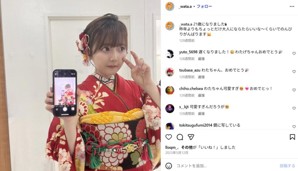 こちらの2023年5月12日投稿のInstagramで、21歳になったことを公表しています。