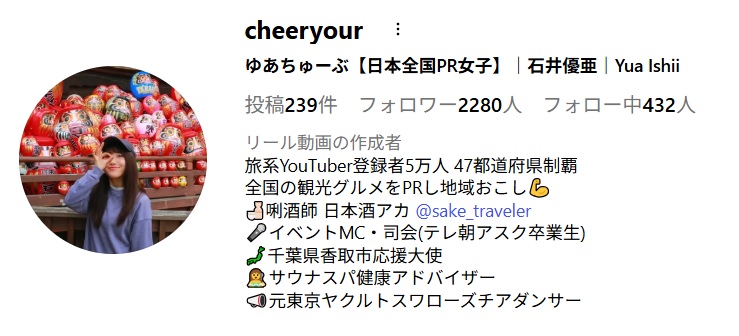 「ゆあちゅーぶ」さんのInstagramで、香取市を生まれ育った地元と語っています。